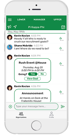 Cliqwave has been an essential tool for the success of my chapter's communication of events and announcements. Features like being able to see where the brothers are and who is currently at the fraternity house make the house more lively. My personal favorite ability is to be able to send out announcements that send everyone a notification even if they have the chat muted. I would recommend this app to any chapter that is trying to stay organized and manage their members more effectively.